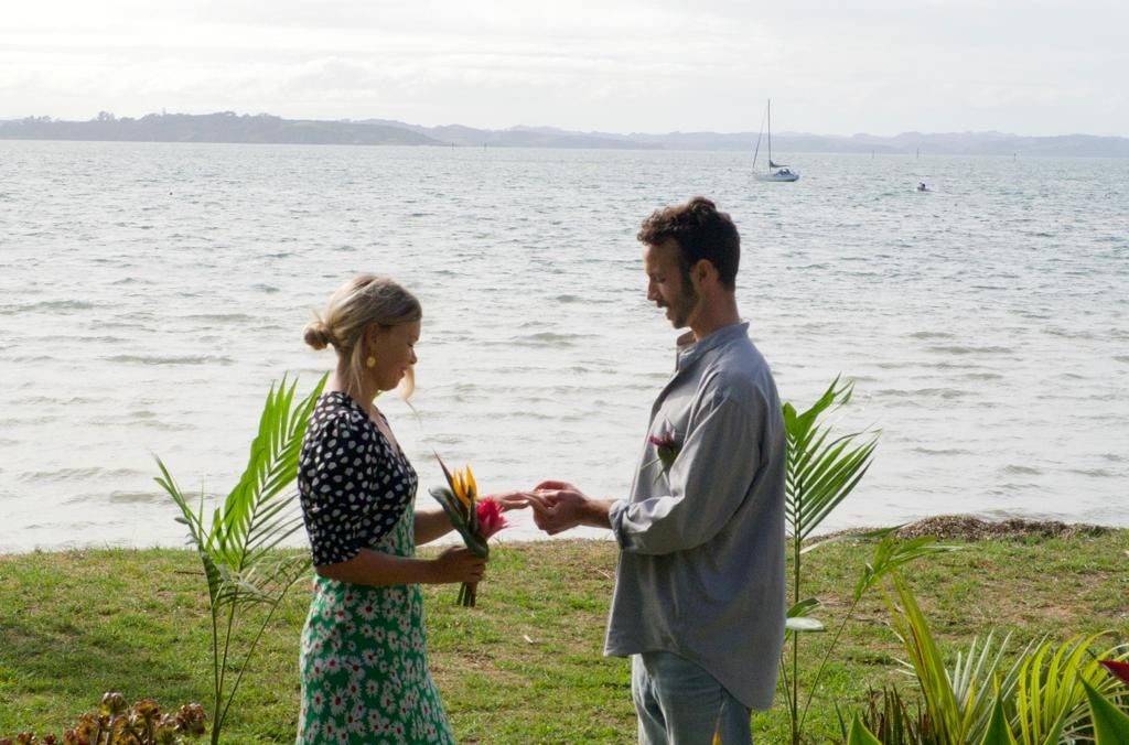 As soon as lockdown in New Zealand was lifted, Matt contacted a registrar. He asked her to officiate at a beach wedding in Karaka Bay, the home of Bex’s Aunt and Uncle. Immediate family in the UK were asked to send videos. So, we sent an emotional ‘Silly old Mum’ weepy; some amusing sibling advice from a spoof of ‘The Chins’; a cheers with a favourite drink from Dad. There was also a song with words changed giving more advice and lovely harmonies from the musical siblings.