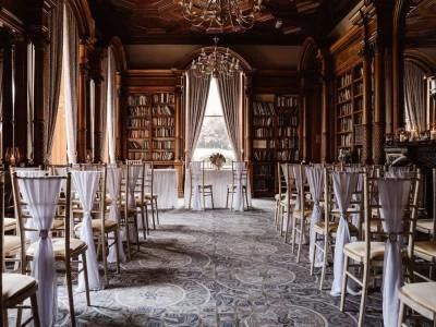 Set within 315 acres of beautiful grounds, Oakley Hall Hotel offers a spectacular backdrop to the most memorable day of your life. The Library, with beautifully preserved features such as the Georgian fireplace and mahogany lined walls filled with romance novels, is an intimate and romantic setting, perfect for a dark academia wedding!