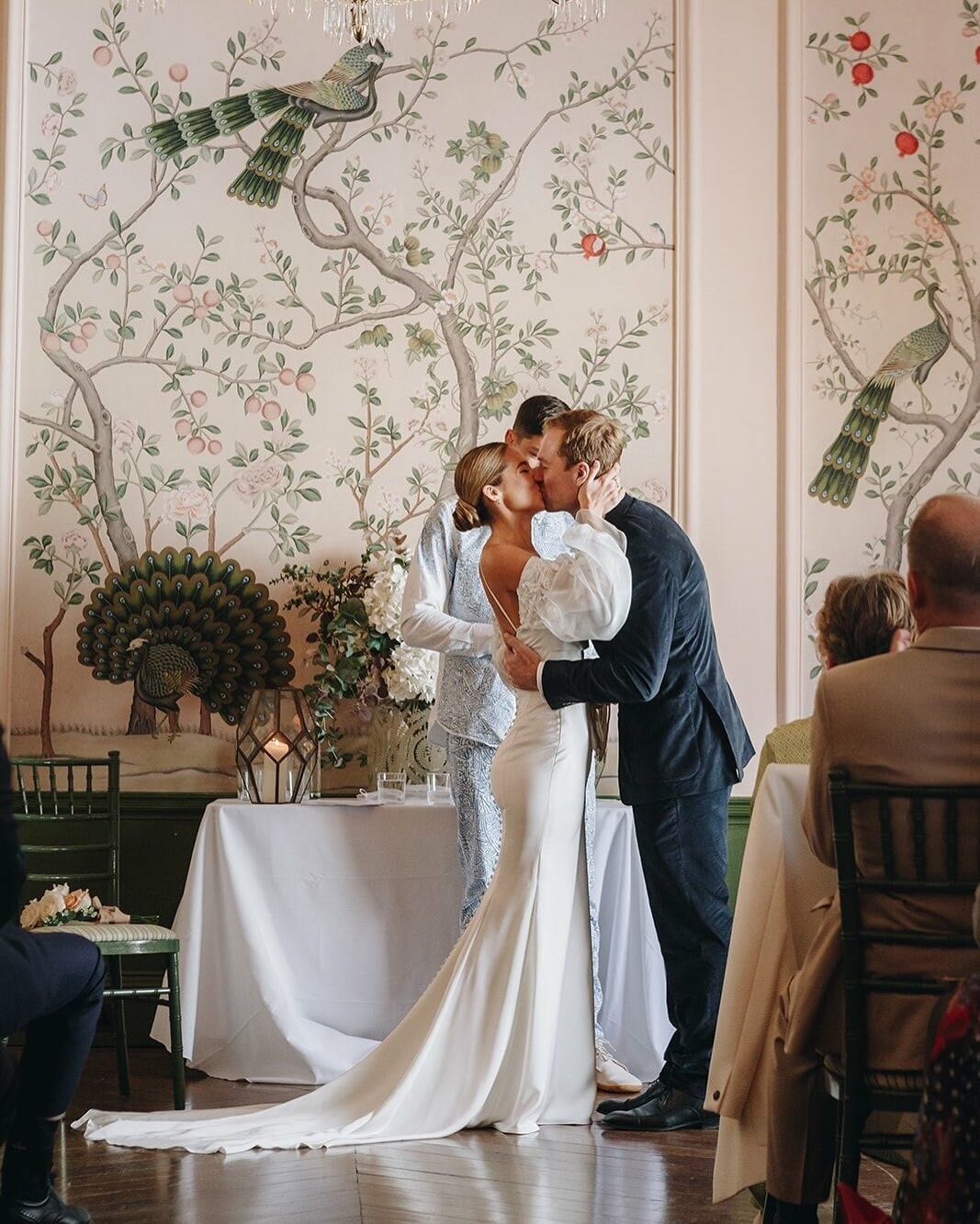 The magnificent Georgian Ballroom, with its hand-painted Chinoiserie-panelled walls, offers a magical setting for your wedding breakfast. It features two fireplaces, large bay windows, high ceilings, a minstrel's gallery, and a spacious bar area. In the evening, the space is transformed for dancing and entertainment. The Ballroom comfortably hosts up to 80 guests for the wedding breakfast and up to 120 for the evening celebration. If you're looking for an outdoor ceremony, the beautiful courtyard can host up to 80 guests.