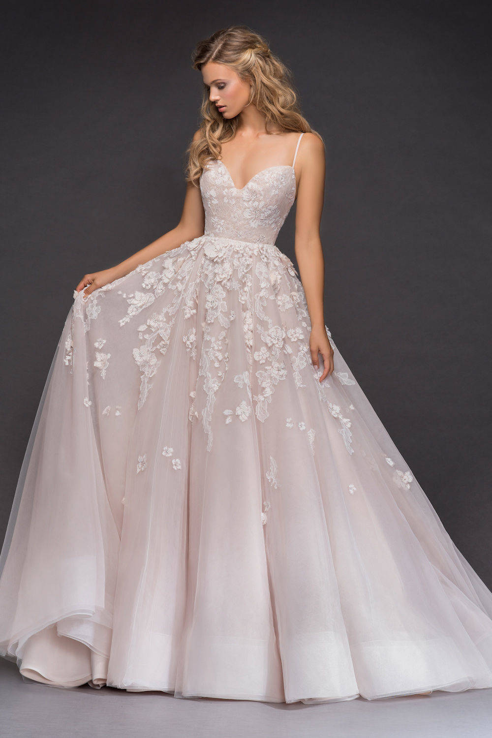 Replace your traditional white bridal gown with a gorgeous blush dress which oozes with Valentine's day glamour. Often associated with Valentine's day, blush, pink and red are romantic colours which work perfectly for this theme. To match your beautiful blush dress, why not wear your hair in romantic, cascading soft curls to match your princess-inspired look? We are obsessed with this stunning Hayley Paige gown!